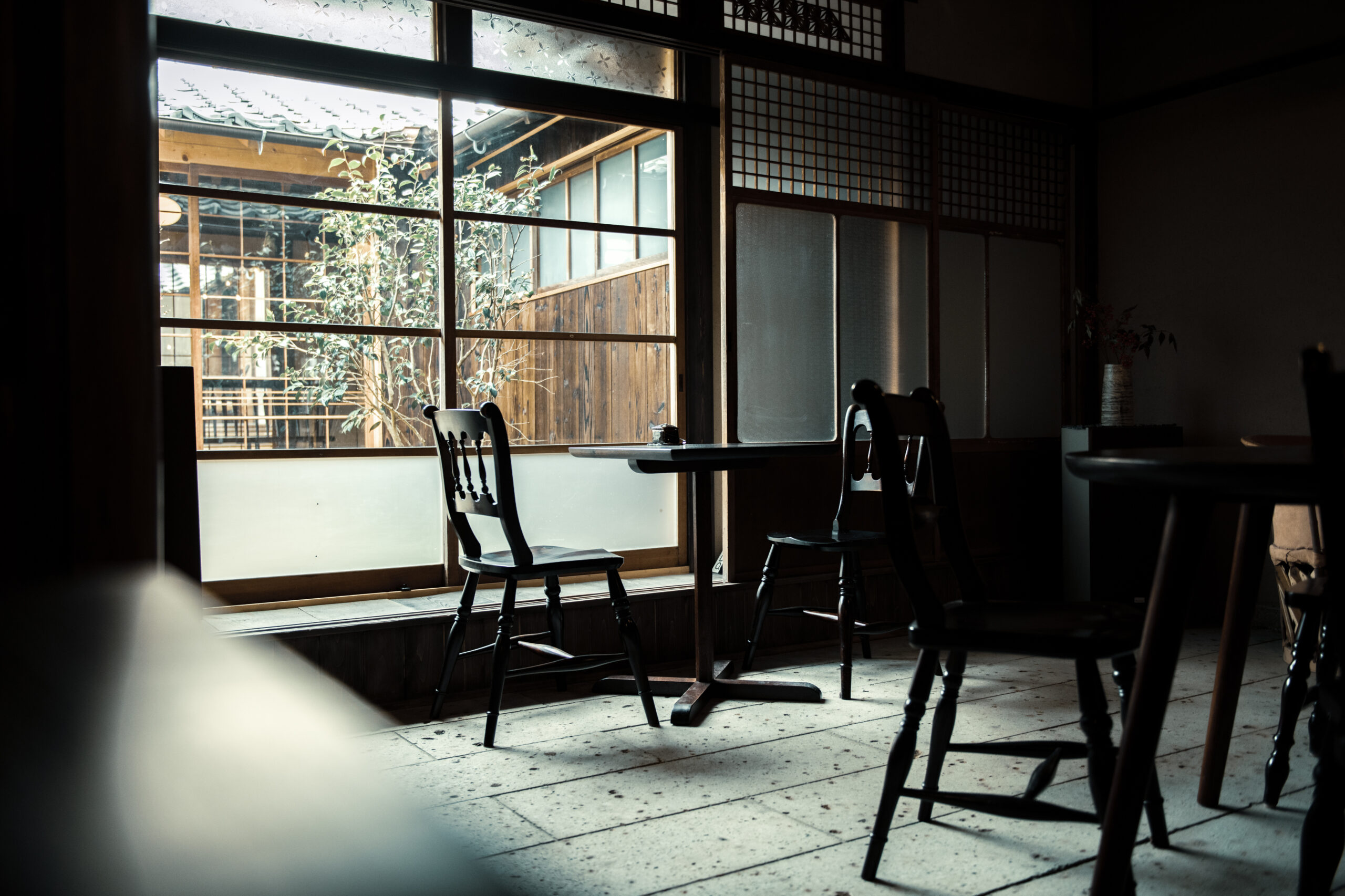 江戸末期からの建築様式を残すOitoの一階前面には、喫茶が併設しております。
