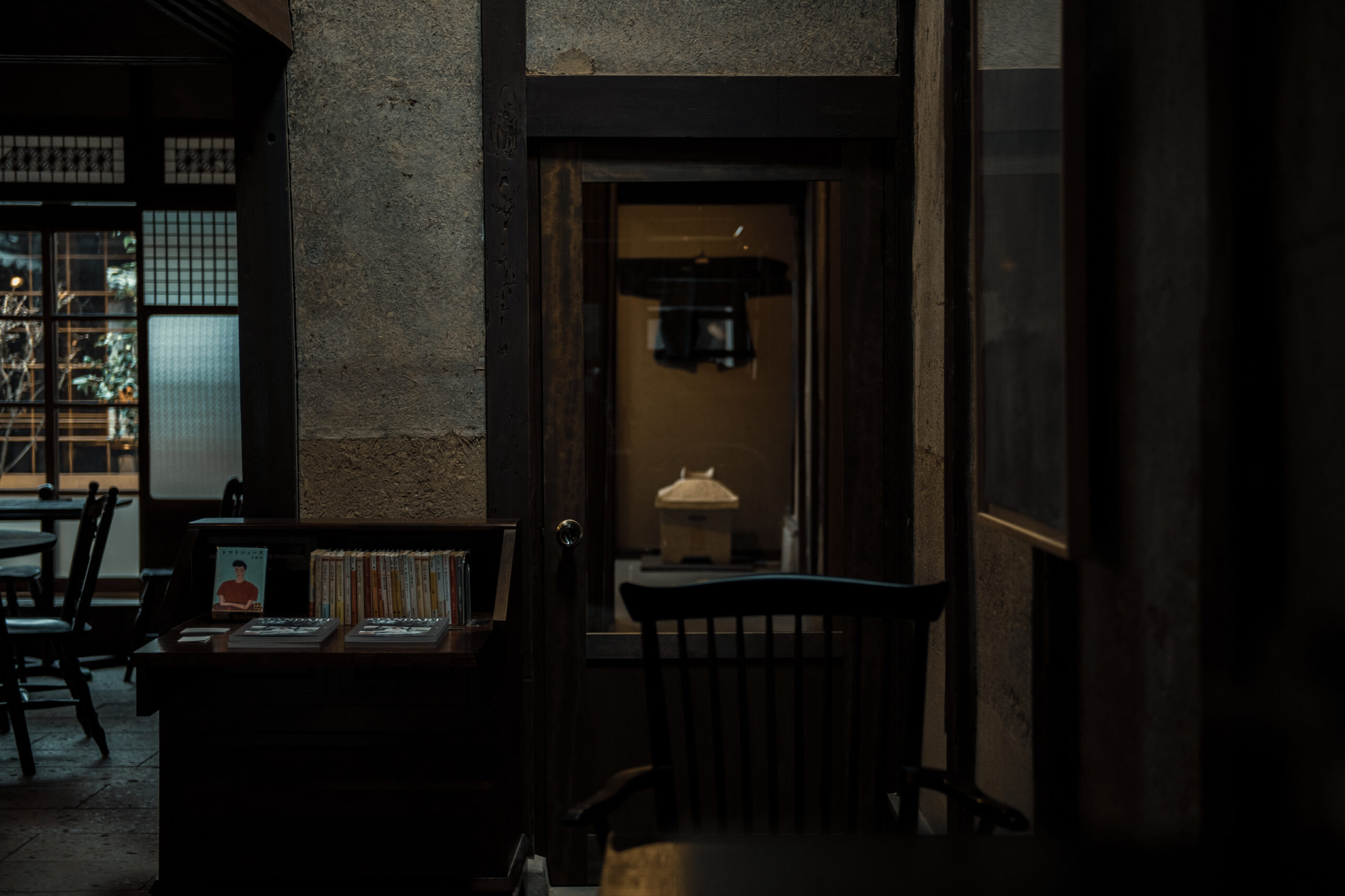 喫茶の階段を上がっていくと、そこにはかわいい屋根裏部屋。据え付けの棚には、手仕事や暮らしにまつわる本を選書しております。小窓からは、二階からの河原町の街並みを眺めることが出来ます。設えには異国のエッセンスも少し入れ、一人旅や、海外のお客様にもお勧めするお部屋となっております。